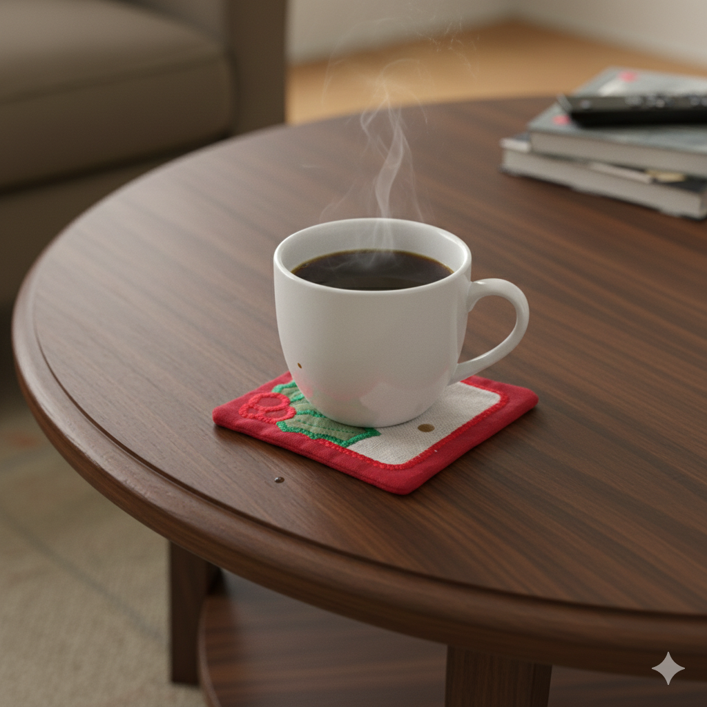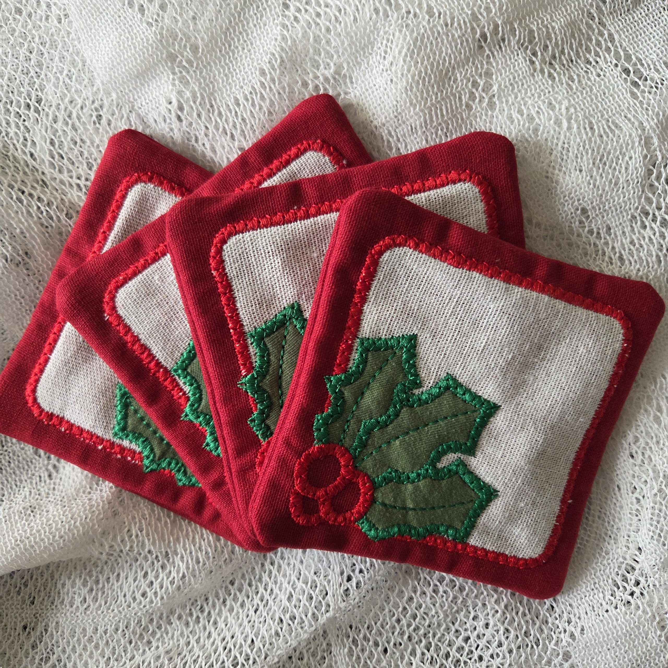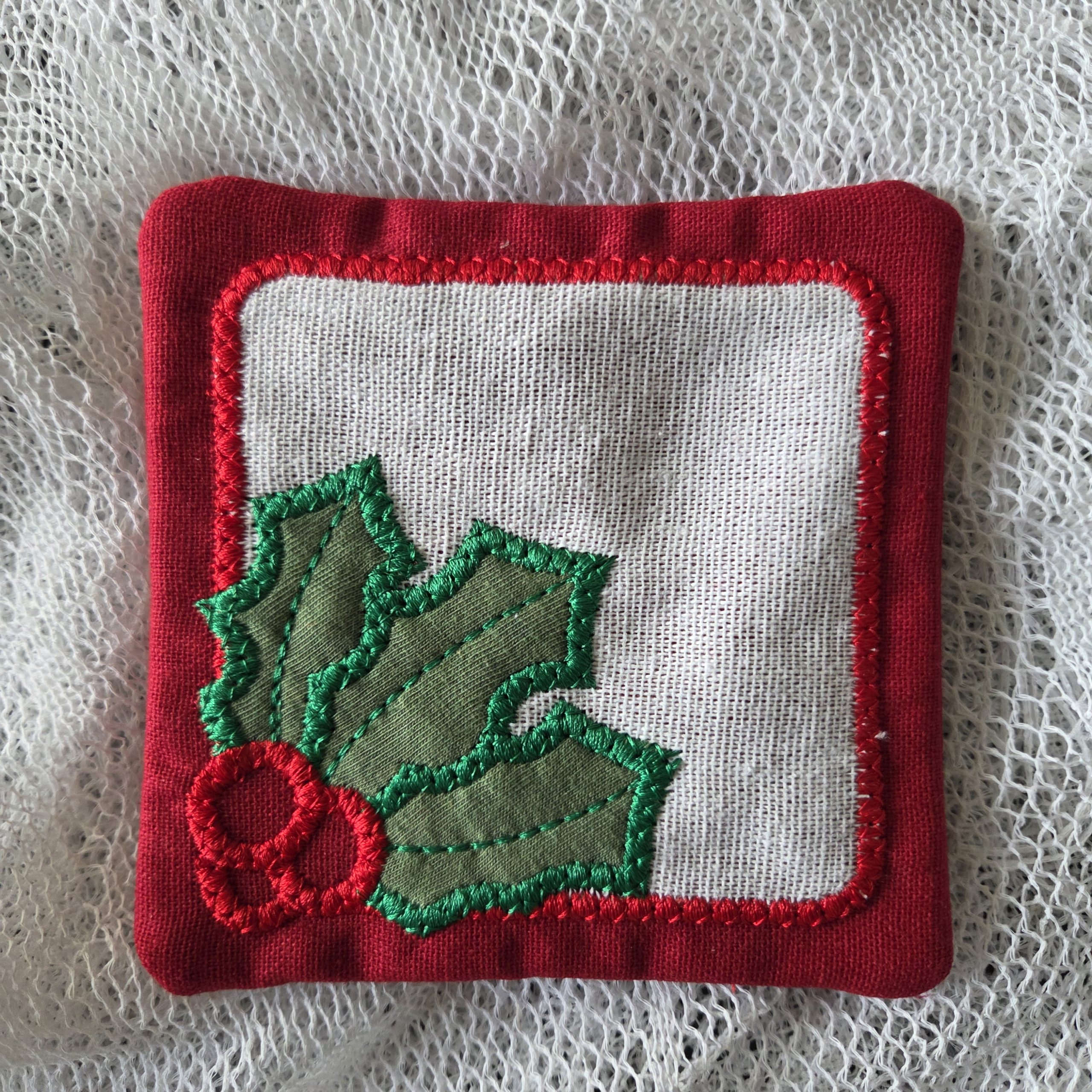 Add a festive touch to your home with this handmade embroidered coaster featuring a classic holly design. Each piece is crafted from quality cotton fabric and finished with bright, detailed stitching. Perfect for holiday décor, gift giving, or everyday use.