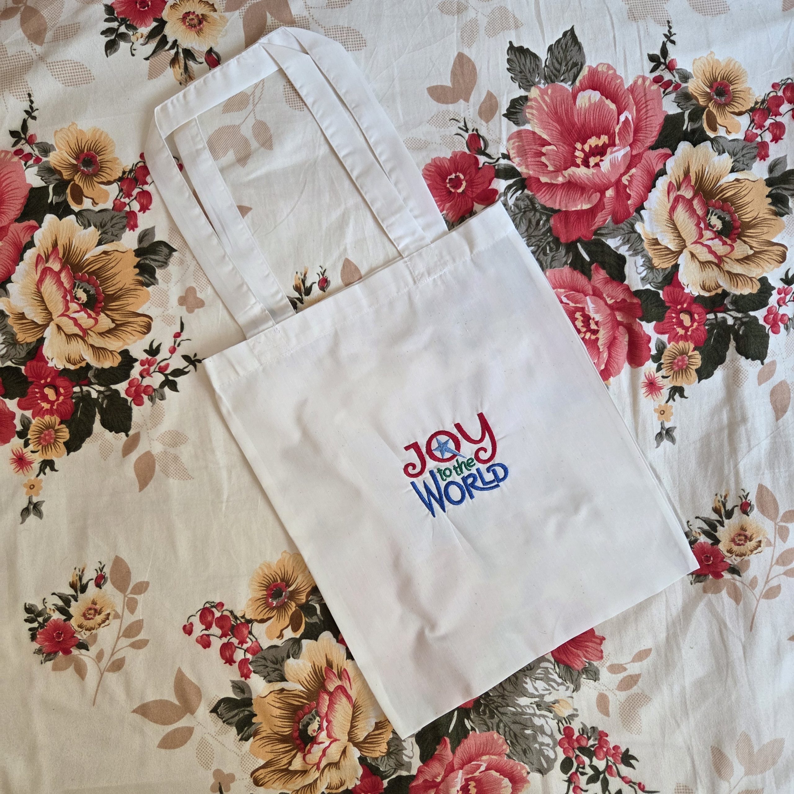 ✨ “Joy to the World” Embroidered Christmas Tote Bag – 40 x 32 cm ✨